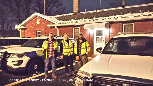 This is what an ice storm standby looks like. ICE on the cars but not on the roads. In a pinch we could have manned 4 SOLO vehicles if needed. A standby is the same as an incident call out. Come on down and hang out with the team, so we are ready to go. Thanks Rob, Wanda and Brian