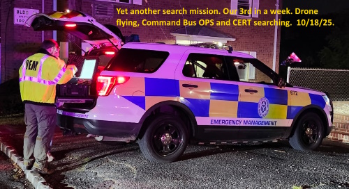 A busy week with 3 search missions. This week, Pipeline Safety training, Monthly meeting ICS and Staging refresher, weekly Food POD, Trunk N Treat, and finishing with a Breast Cancer 5K with 3500 folks.