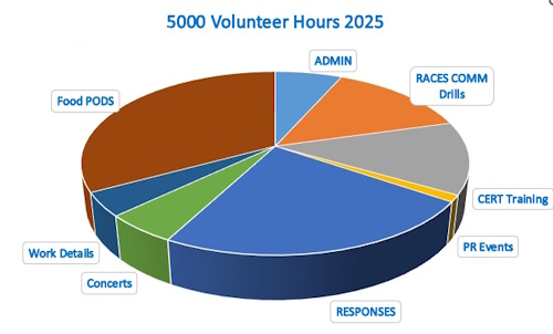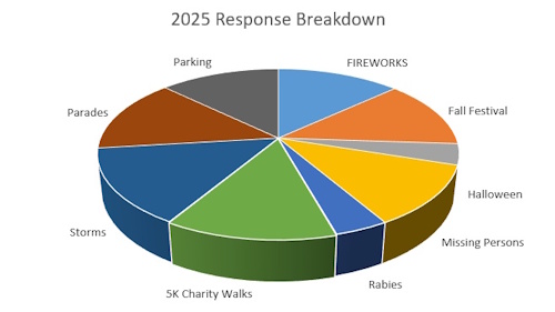 Another busy year with over 5,000 volunteer man hours. At NJ FEMA rates that amounts to about $240,000. The usual Parades, Fireworks, Halloween, Fall Festival, summer concerts & movies, rabies clinic etc. Our largest effort continues to be our weekly food distribution. 44 Food POD’s, on average serving 250 families each week = 11,000 food deliveries. 11 Missing persons calls, 6 storm responses, and 3 -5K charity events. Plus the usual training and drills. Thanks to all our volunteers!