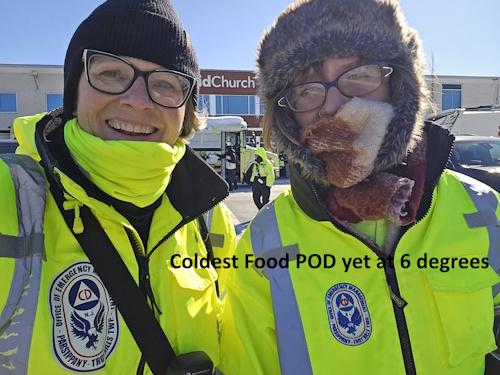 A dozen CERT members braved the snow to hand out 500 Turkeys